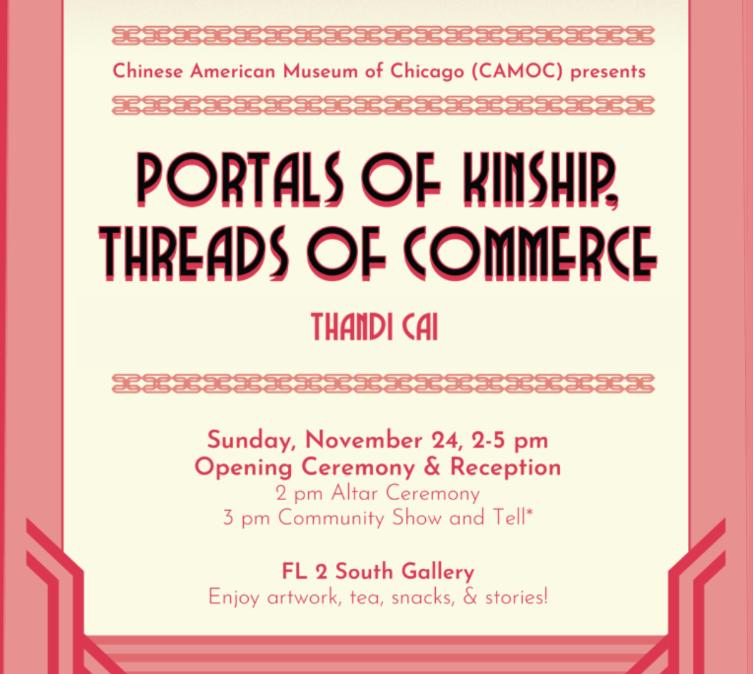 Join us for the reception of our newest exhibition with Thandi Cai. The event opens with an altar ceremony and a community Show-n-Tell. Enjoy art, tea, snacks, and stories. To share at the Show-n-Tell, bring any object that represents kinship/connection to you.
