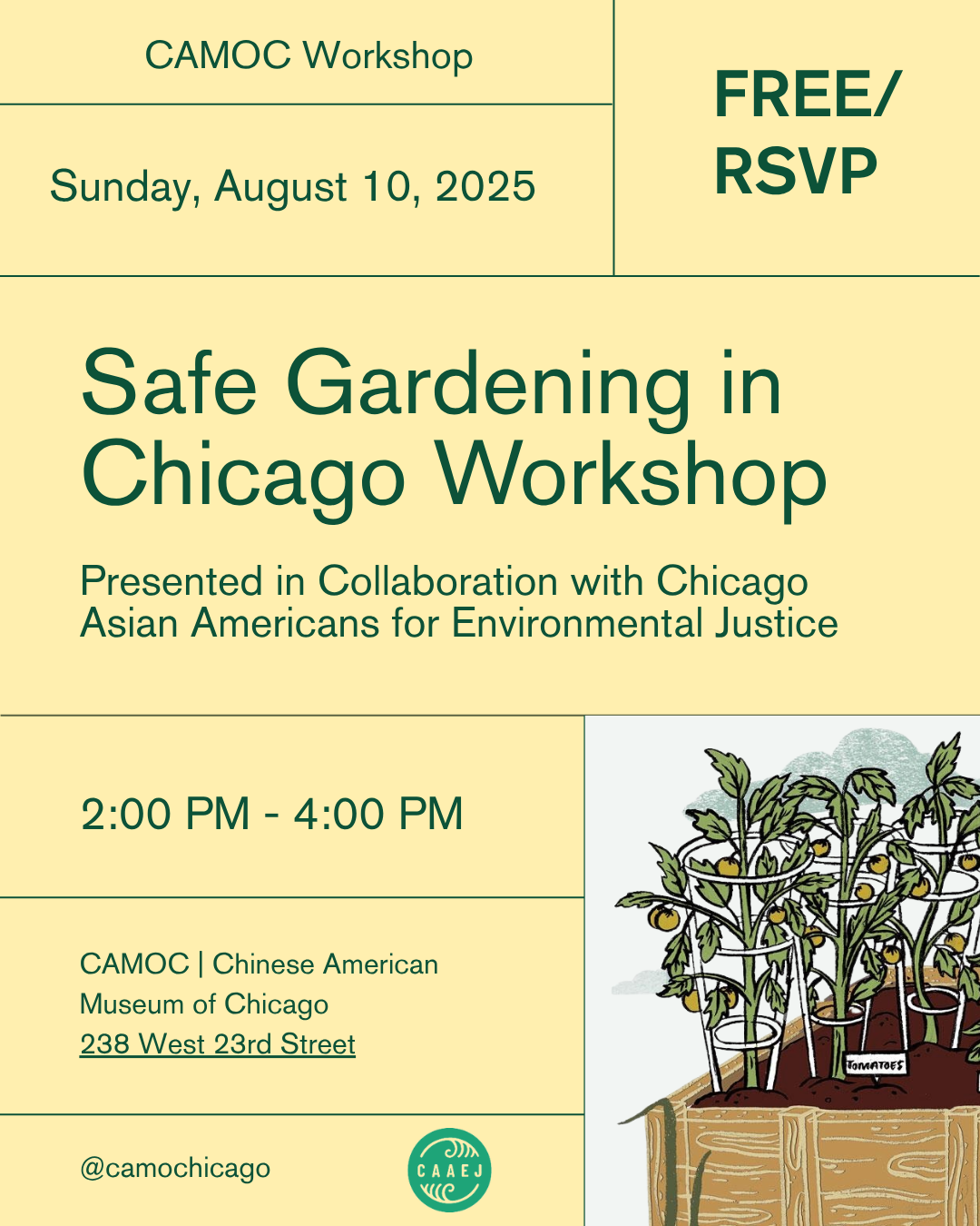 Presented by Chicago Asian Americans for Environmental Justice (@‌chicagoaaej), this workshop will be taught in English and Cantonese.